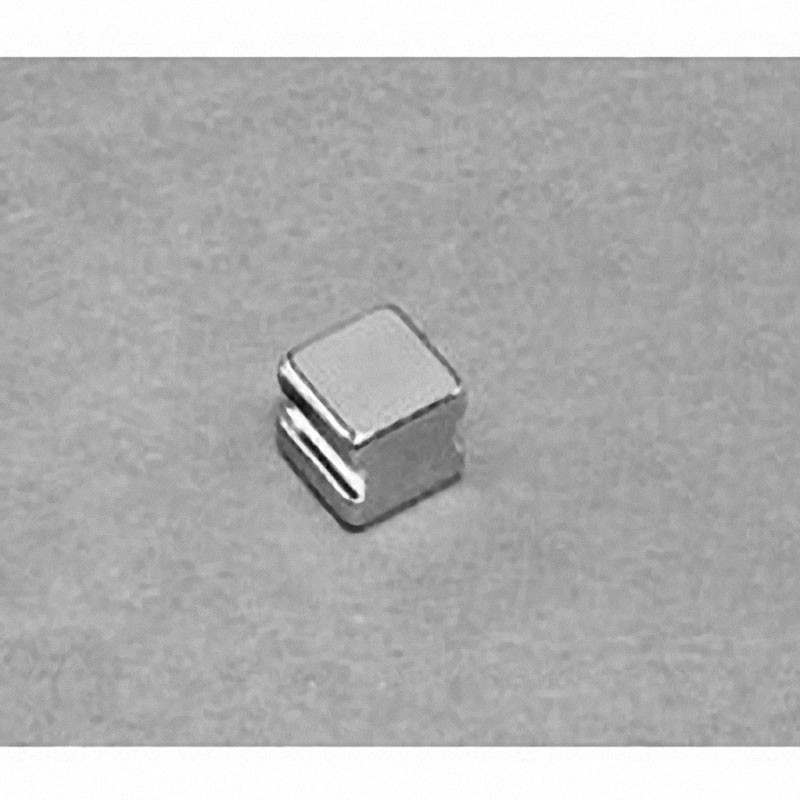 This neodymium countersunk magnet is made of super strong N42 NdFeB (NIB) material, coated with Nickel (Ni+Cu+Ni triple layers). The dimension of this Tiny neodymium magnet is 1/4″ x 1/4″ x 1/8″ thick, magnetized Through Thickness. Its individual pull force is approximately 2.84lbs.