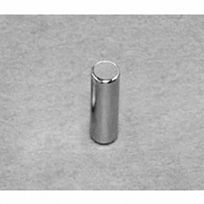 This neodymium countersunk magnet is made of super strong N42 NdFeB (NIB) material, coated with Nickel (Ni+Cu+Ni triple layers). The dimension of this Tiny neodymium magnet is 2/10″ dia. x 1/2″ thick, magnetized Through Thickness. Its individual pull force is approximately 2.45lbs.