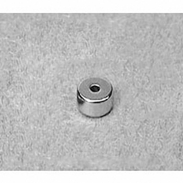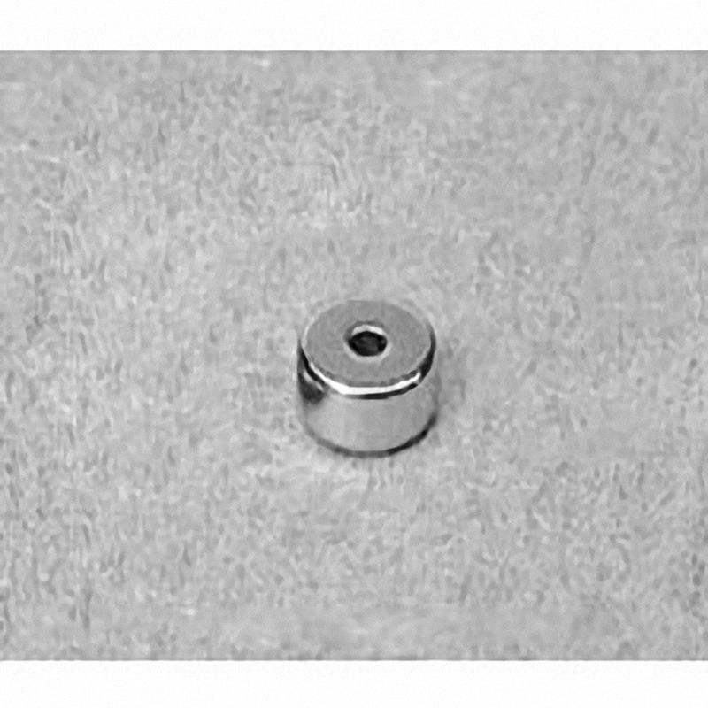 This neodymium countersunk magnet is made of super strong N42 NdFeB (NIB) material, coated with Nickel (Ni+Cu+Ni triple layers). The dimension of this Micro neodymium magnet is 1/4″ od x 1/16″ id x 1/8″ thick, magnetized Through Thickness. Its individual pull force is approximately 2.18lbs.