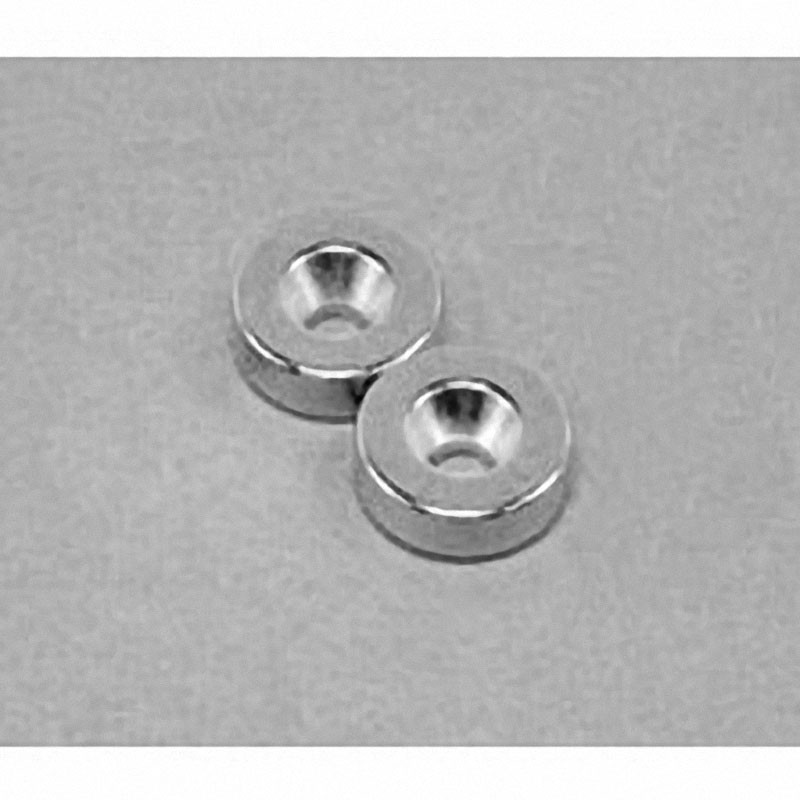 R822CS-P Neodymium Ring Magnet, 1/2″ od x 1/8″ id x 1/8″ thick with countersunk hole for 4 screw